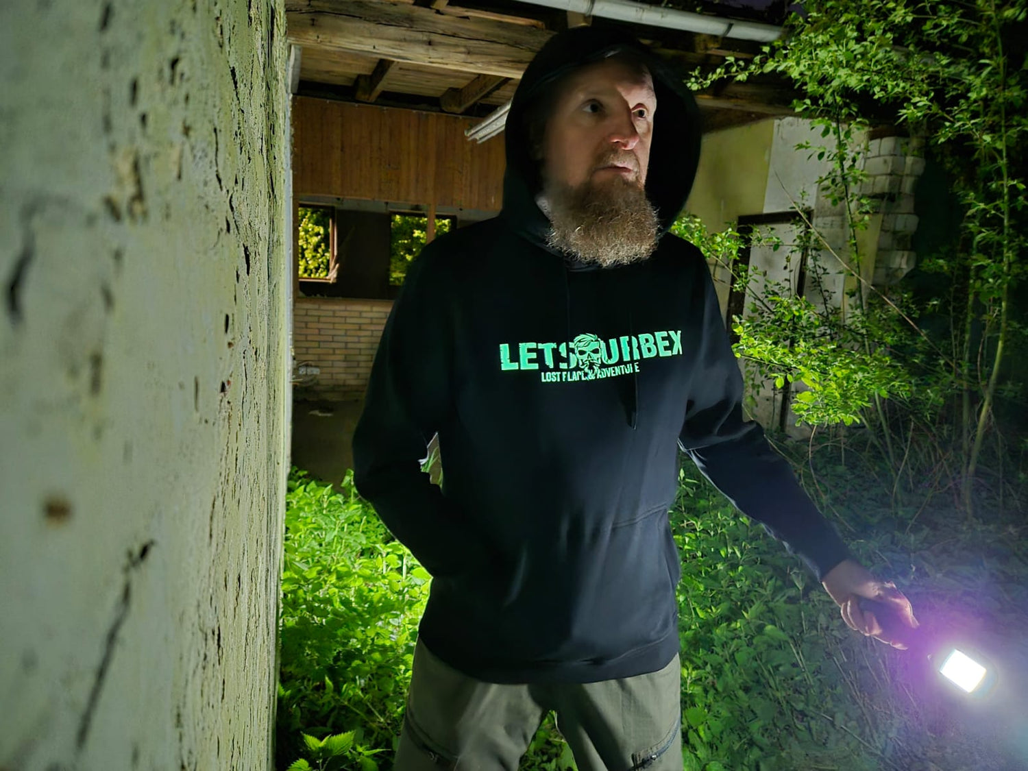 HOODIE GLOW IN THE DARK – „LOST PLACE – LETS URBEX – ADVENTURE"“